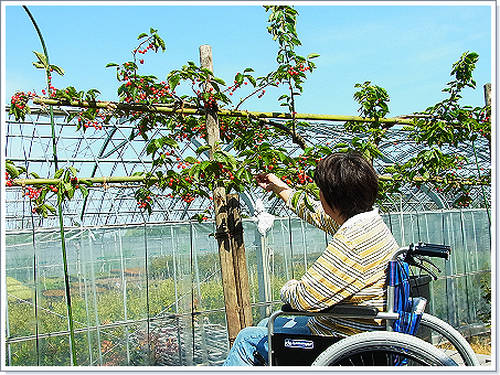 車椅子に座りながら収穫を体験することが可能です。