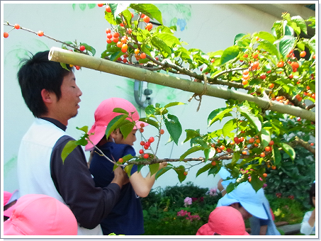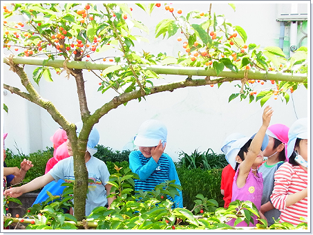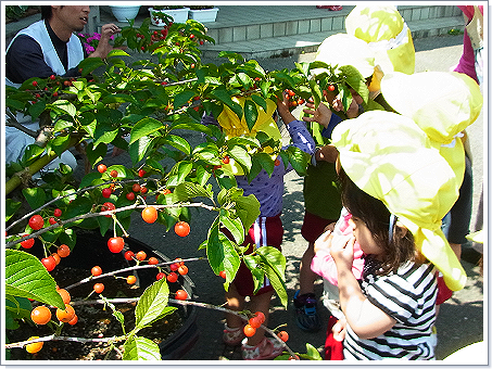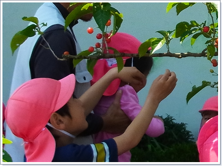 ※大山町内の保育園で試験的に置かせていただいた際、園児はさくらんぼの実が熟す様子を観察し、自分で収穫出来た事で大喜び、